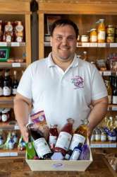 Aux côtés de Lucas OLIVIER, retrouvez les produits à base de cassis de la ferme Fruirouge (confitures, boissons et condiments bio), fabriqués par ses parents avec les fruits de son frère, ainsi que les vins du Domaine Manuel OLIVIER (son oncle), proposés au prix de la ferme et du domaine.