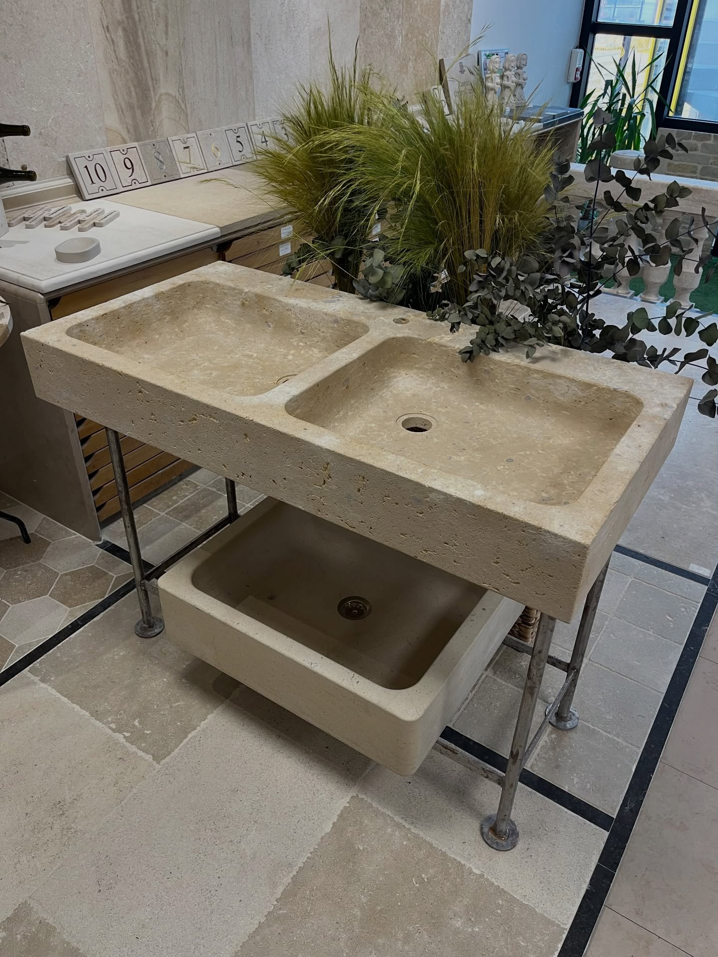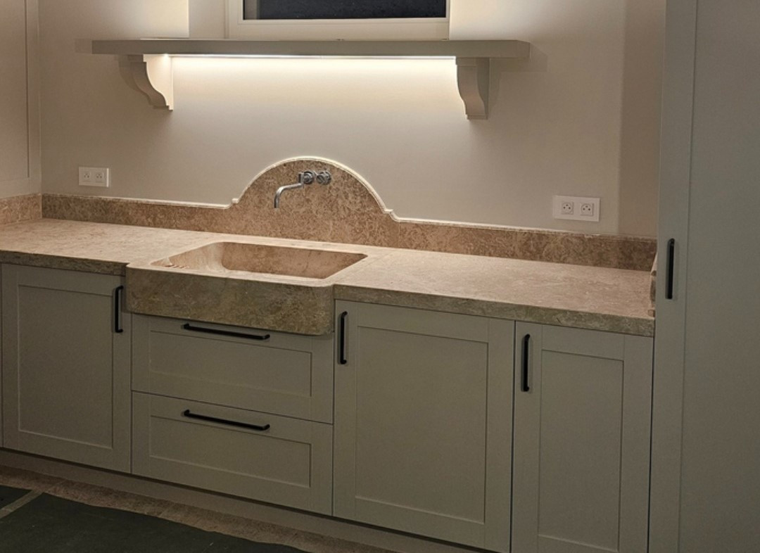 Dans les ateliers, chaque pièce prend forme avec précision et exigence. Dallages, éviers, plans de cuisine, vasques, margelles ou éléments sur mesure : tout est fabriqué à partir de pierres naturelles locales, sélectionnées pour leur qualité, leur résistance et leur beauté authentique.