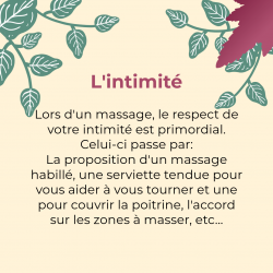 Chacune de mes séances est personnalisée en fonction de vos besoins spécifiques et de vos envies. Que ce soit pour soulager vos douleurs musculaires, améliorer l'équilibre de votre corps, ou simplement vous offrir une pause régénératrice dans votre quotidien, je crée un environnement calme et apaisant, où chaque geste est effectué avec précision, mêlant puissance et délicatesse, dans le respect des techniques du soin du corps.